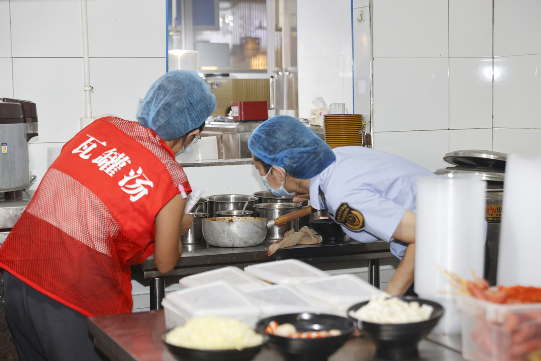 为了提升校园食品安全管理能力,工作人员还查看学校食堂环境卫生状况、设施配备、餐具消毒保洁等情况。同时,认真查阅食品原料标识、用餐区是否有虫害、从业人员健康管理等台账记录,并重点对食材储存、食品加工制作、留样管理等关键环节进行了监督检查。